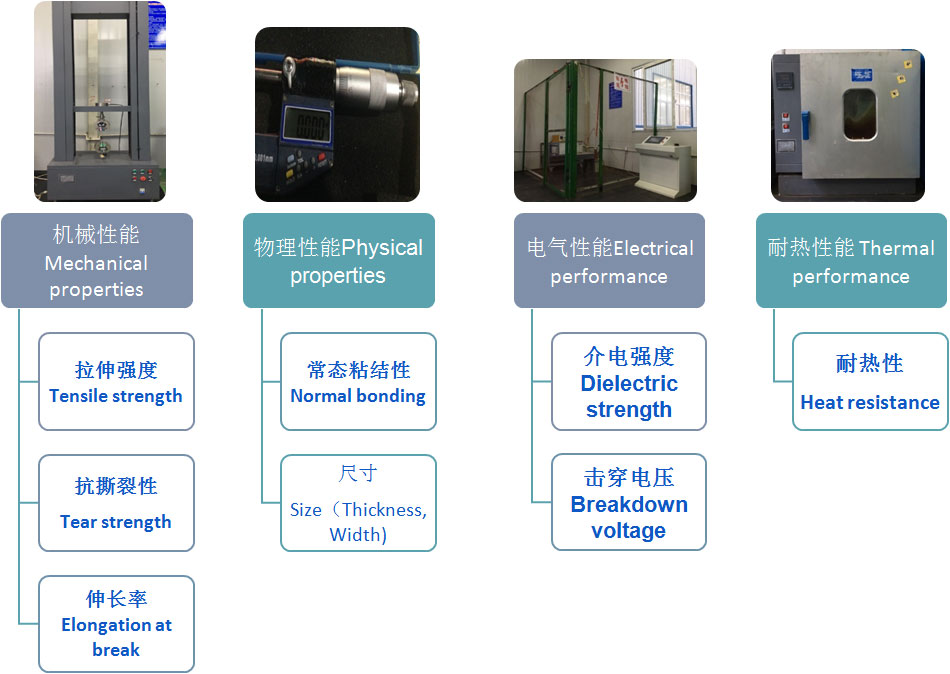 Equipment: electronic tensile testing machine, breakdown voltage meter, hot air circulation oven, analytical balance;